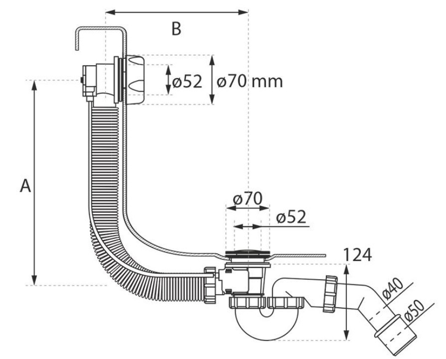 M-Acryl/H2O automata le- és túlfolyó szifonnal, 60 cm (15200)